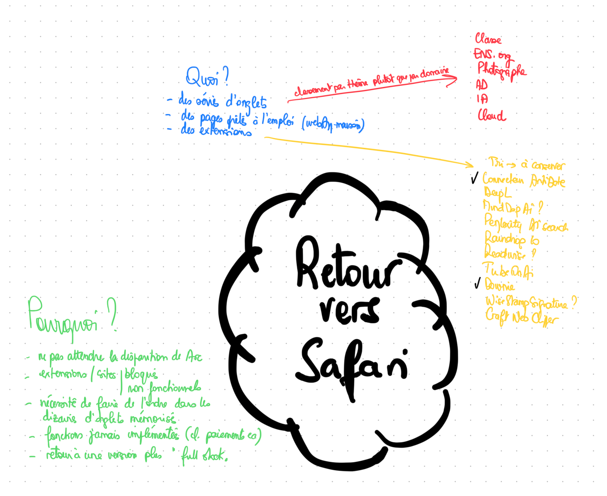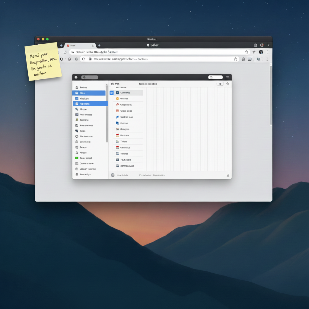 Il ne m'a pas fallu très longtemps pour choisir le navigateur qui allait remplacer Arc. Un équivalent existe sous Firefox, quelques navigateurs indépendants ont un fonctionnement semblable à Arc. Mais je ne comptais absolument pas repartir avec un bricolage ou une solution qui ne serait pas forcément pérenne. Autre point positif lorsque l'on fonctionne avec de nombreuses machines, Safari synchronise le tout automatiquement. Ce n'est pas rien à mon niveau. Je n'aurai que les icônes à replacer au bon endroit sur chaque appareil.